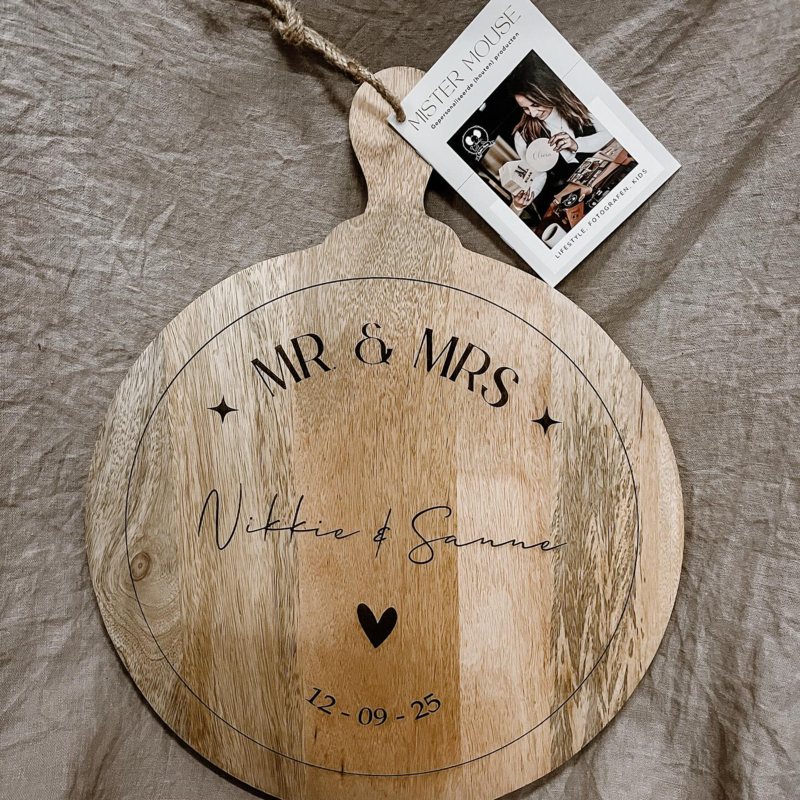 De gewenste gravering doorgeven via opmerkingen later in het bestel systeem of via mail info@mistermouse.nl. We zullen altijd het digitale ontwerp laten zien alvorens we het in de plank zullen graveren.